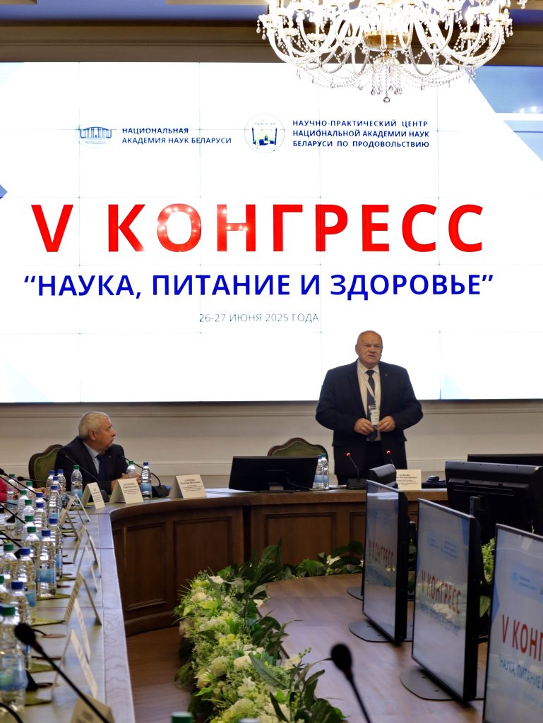 26 июня 2025 года в Минске состоялось торжественное открытие V Международного конгресса «Наука, питание и здоровье», организованного РУП «Научно-практический центр НАН Беларуси по продовольствию». Мероприятие собрало ведущих ученых, представителей государственных органов и отраслевых предприятий, которые обсудили современные направления развития пищевой индустрии, медицинские и социальные аспекты питания, а также вопросы повышения качества пищевой продукции и внедрения инновационных решений в данной сфере. Конгресс стал важной платформой для обмена знаниями и опытом, способствующей развитию продовольственного сектора Беларуси и укреплению международного сотрудничества.